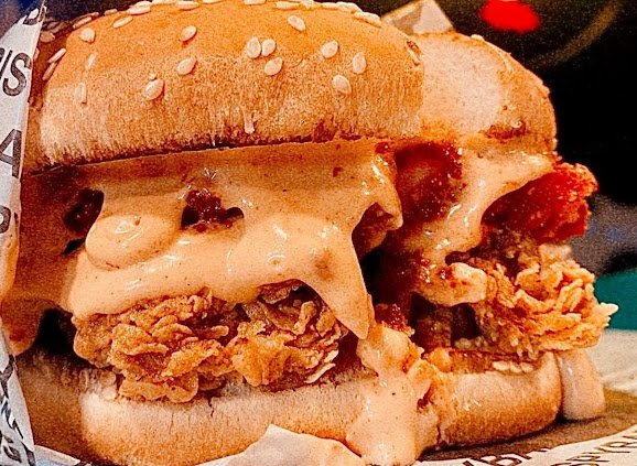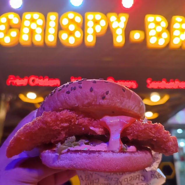 - Crispy Bae Special Burger – Juicy chicken fillet, layered with sauces and fresh veggies.